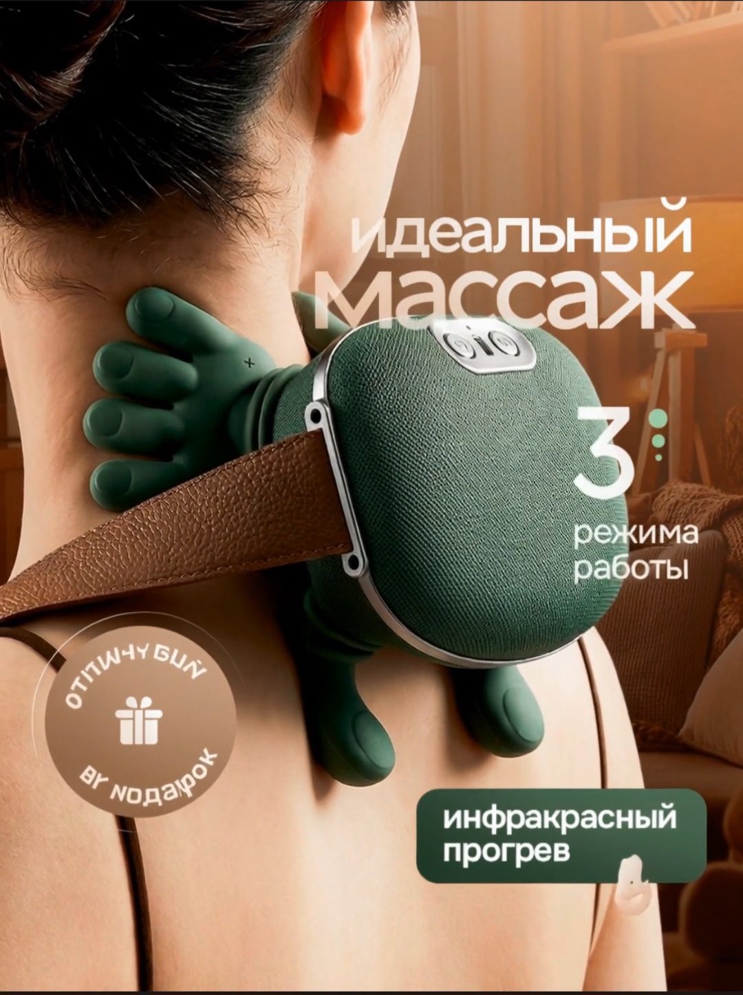 Технология Зд массажа Шиацу глубоко прорабатывае триггерные точки, устраняет мышечные спазмы и скованность. Инфракрасное излучение и функция подогрева улучшают кровообращение, снимают воспаление и уменьшают боль в шейно-воротниковой зоне. спине и плечах