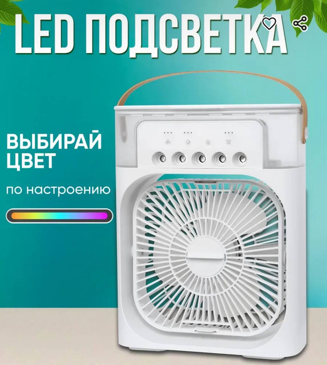 Настольный вентилятор с подсветкой и увлажнителем — это практичное устройство для охлаждения и создания комфортного микроклимата в домашних условиях, на даче или в офисе. Мини формат позволяет разместить его на любом столе или рабочей поверхности, что особенно удобно для небольших помещений. Благодаря встроенному аккумулятору вентилятор можно использовать автономно, не привязываясь к розетке, а зарядка осуществляется от стандартных источников питания. Вентилятор работает тихо, не мешает отдыху или работе, а также экономно расходует энергию.Комнатный мини охладитель воздуха оснащен функцией увлажнителя, что особенно актуально в сухих помещениях. Водяной резервуар легко заполняется, позволяя устройству работать как водный охладитель, эффективно снижая температуру и повышая влажность. Такая комбинация вентилятором и увлажнителем способствует созданию приятного микроклимата в жаркое время года. Устройство подходит для использования дома, в офисе, а также на даче, обеспечивая свежесть и прохладу в любой ситуации.Маленький размер делает вентилятор идеальным для установки на рабочий стол или прикроватную тумбу. Встроенная подсветка обеспечивает мягкое освещение, что удобно в ночное время или при работе в условиях недостаточной освещенности. Мини формат и легкий вес позволяют брать устройство с собой в поездки или использовать в разных комнатах. Вентилятор работает от аккумулятора, что обеспечивает мобильность и независимость от стационарных источников питания.Вентилятор с увлажнителем способствует не только охлаждению воздуха, но и поддержанию оптимального уровня влажности, что положительно сказывается на самочувствии и состоянии кожи. Охладитель воздуха подойдет для использования в детской комнате, спальне, на рабочем месте или во время отдыха на даче. Функция увлажнителя поможет снизить сухость воздуха, возникающую при работе отопительных приборов или в жаркую погоду.