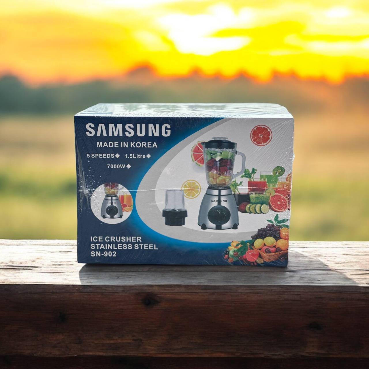 В комплект входят два прозрачных стакана с вертикальным рифлением — один для сока, один для жмыха — оба выполнены в едином стиле с корпусом прибора. Широкое загрузочное отверстие Wide-Feeding Chute принимает крупные куски фруктов и овощей без предварительной нарезки на мелкие кусочки. Все съёмные части легко разбираются и моются под проточной водой — Easy To Clean. Корпус в матовом серебристом цвете с золотыми акцентами выглядит как профессиональное барное оборудование.