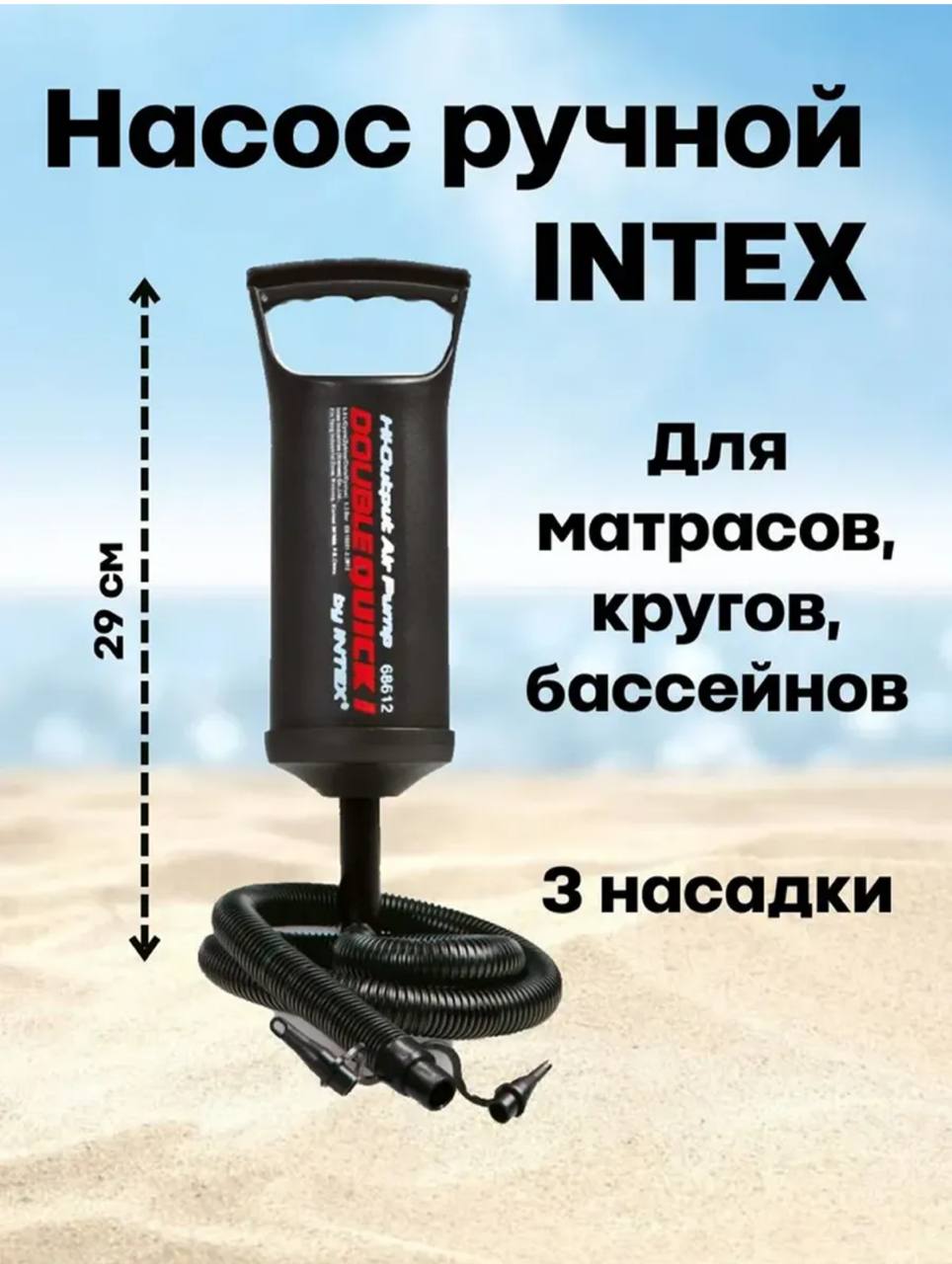 Ручной насос для надувных матрасов и бассейнов INTEX, поршневой насос двойного действия для надувных изделий, насос для надувного круга и бассейна без электричества, ручной насос 3 насадки для пляжа и бассейна, компактный насос для надувания и сдувания INTEX 68612, купить ручной насос INTEX Double Quick — это быстрое и удобное надувание любых изделий на пляже, даче и в бассейне без розетки и проводов.