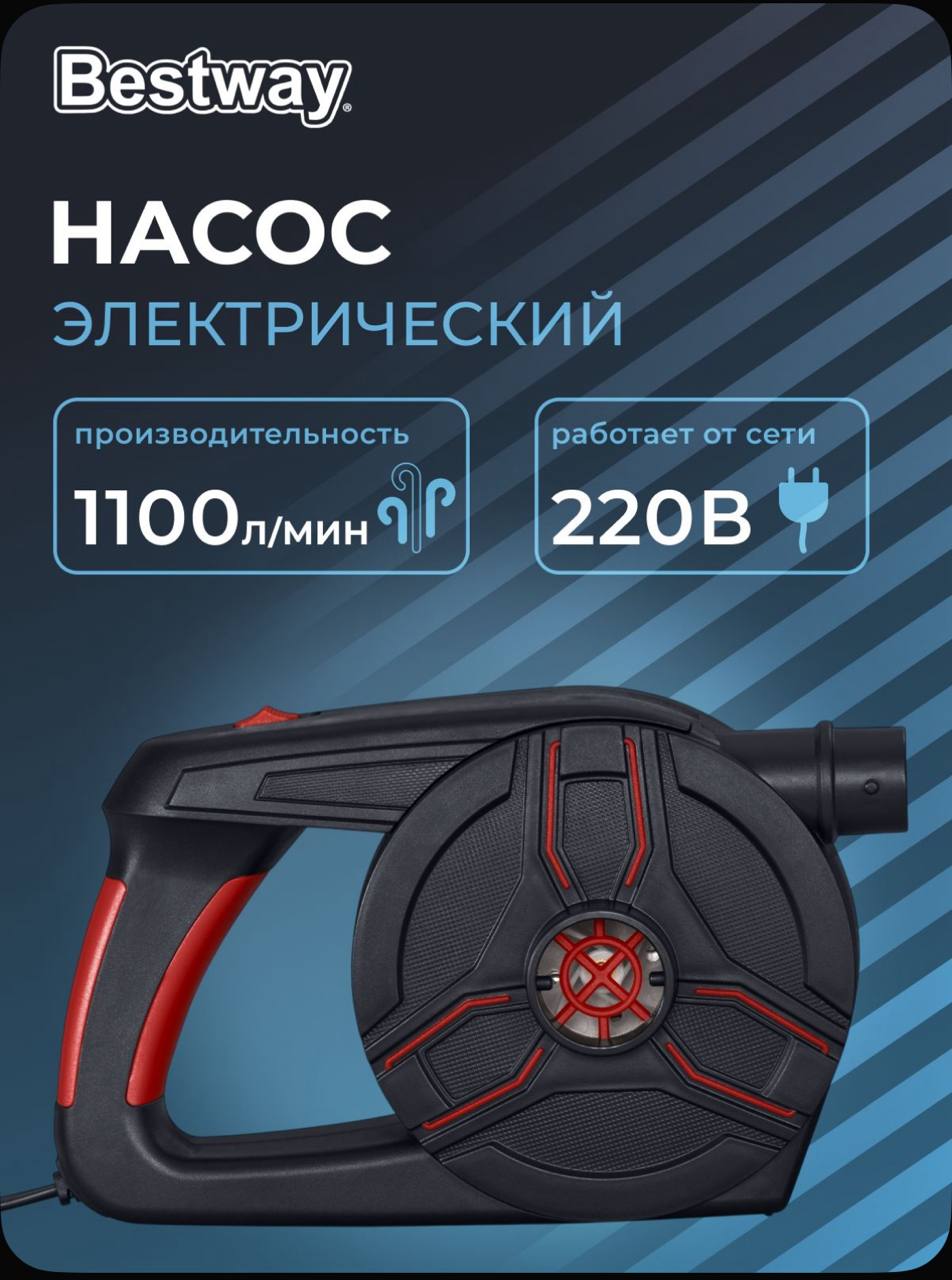 Электрический насос для надувного бассейна 1100 л/мин, мощный электронасос Bestway от сети 220В, быстрый электрический насос для надувания и сдувания матраса и бассейна, турбинный электронасос для крупных надувных изделий, электрический воздушный насос для дачи и бассейна, самый мощный бытовой насос для надувных изделий, купить электрический насос Bestway 1100 л/мин — это максимальная скорость надувания без усилий для всего летнего сезона.