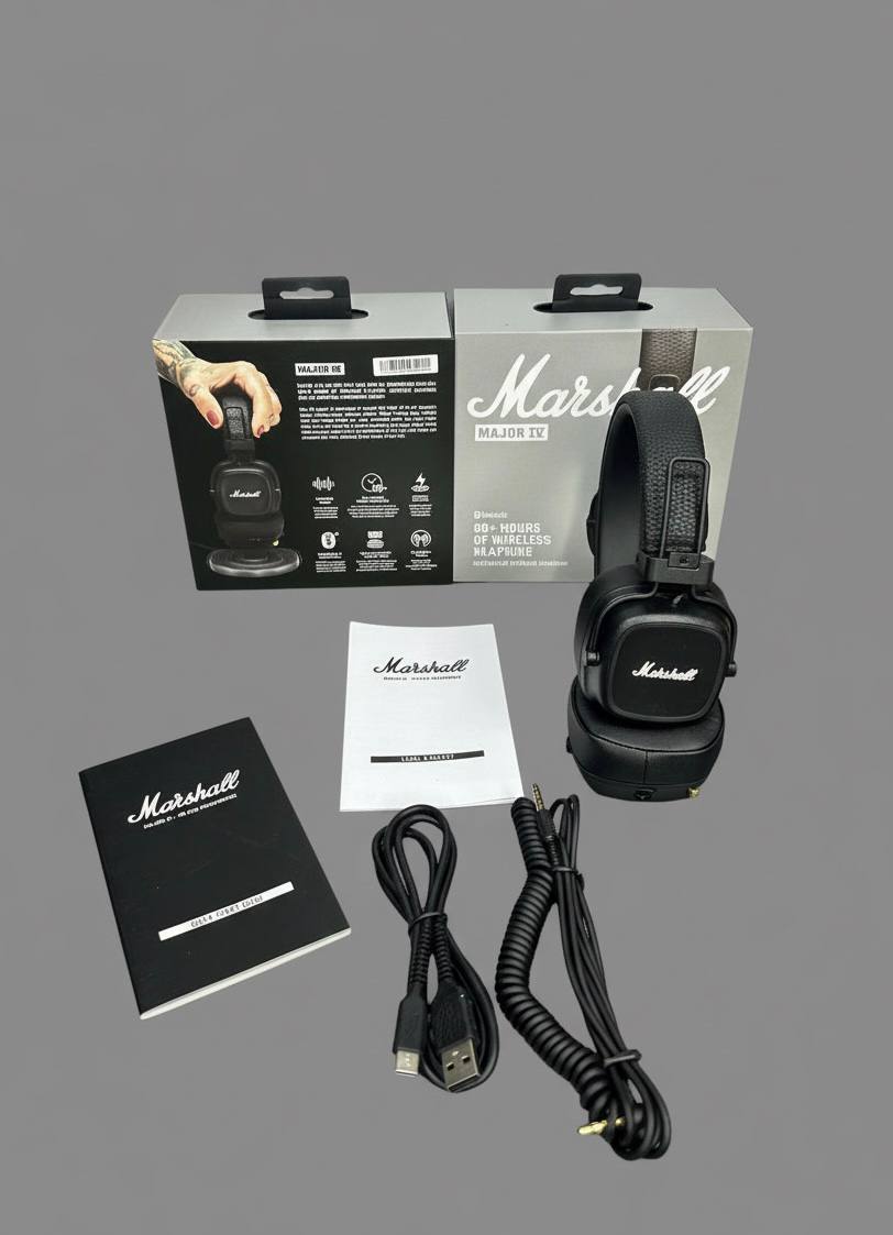 Беспроводные наушники Marshall Major IV Bluetooth 5.0 80 часов автономности, накладные наушники Marshall 40 мм излучатели 32 Ом с беспроводной зарядкой, наушники Marshall Major 4 лёгкие 165 г диапазон 20–20000 Гц, Bluetooth наушники с рекордной автономностью для меломанов, стильные накладные наушники Marshall чёрные с золотом, купить наушники Marshall Major IV — это легендарный звук, культовый дизайн, 80 часов музыки и беспроводная зарядка в одних наушниках.